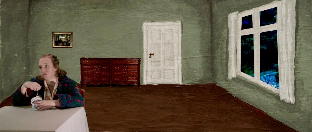 Es wird zuviel geredet, das schlechtet nur Laune. Hilft da Hüttenkäseessen bis ins spät? Oder doch better ins früh? Auch eine Hirschjagt gestaltet sich schwierig mit verglimpften Gewehr. Der Aufzug nach oben stockt. Ein unerwarteter Showdown in der Wildnis. Wider die Verwertbarkeit – Crime and blood – Goldrausch an der Würm – no glory in prevention. Eine filmische Auseinandersetzung mit Texten von Verena Richter. Ein assoziativer Bild- und Tonstrom. Miniaturen, Animation, kleinen Szenen und Musik. Das Theater verwandelt sich für diesen Film in ein Kino.